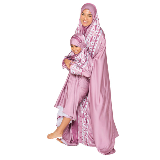 With a deconstructed design from some of our favourite patterns, our satin-feel prayer dresses offer an elegant one-piece outfit option that are comfortable and easy to clean. Complete with a matching drawstring carry pouch, it is great for at-home use as well as travel.