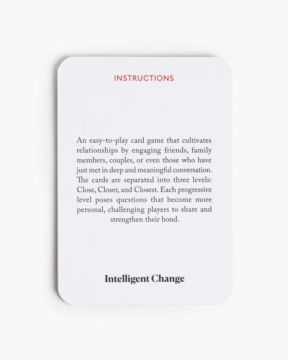 The original, easy-to-play question card game that cultivates relationships by engaging friends, family members, couples, or even those who have just met in deep and meaningful conversations.